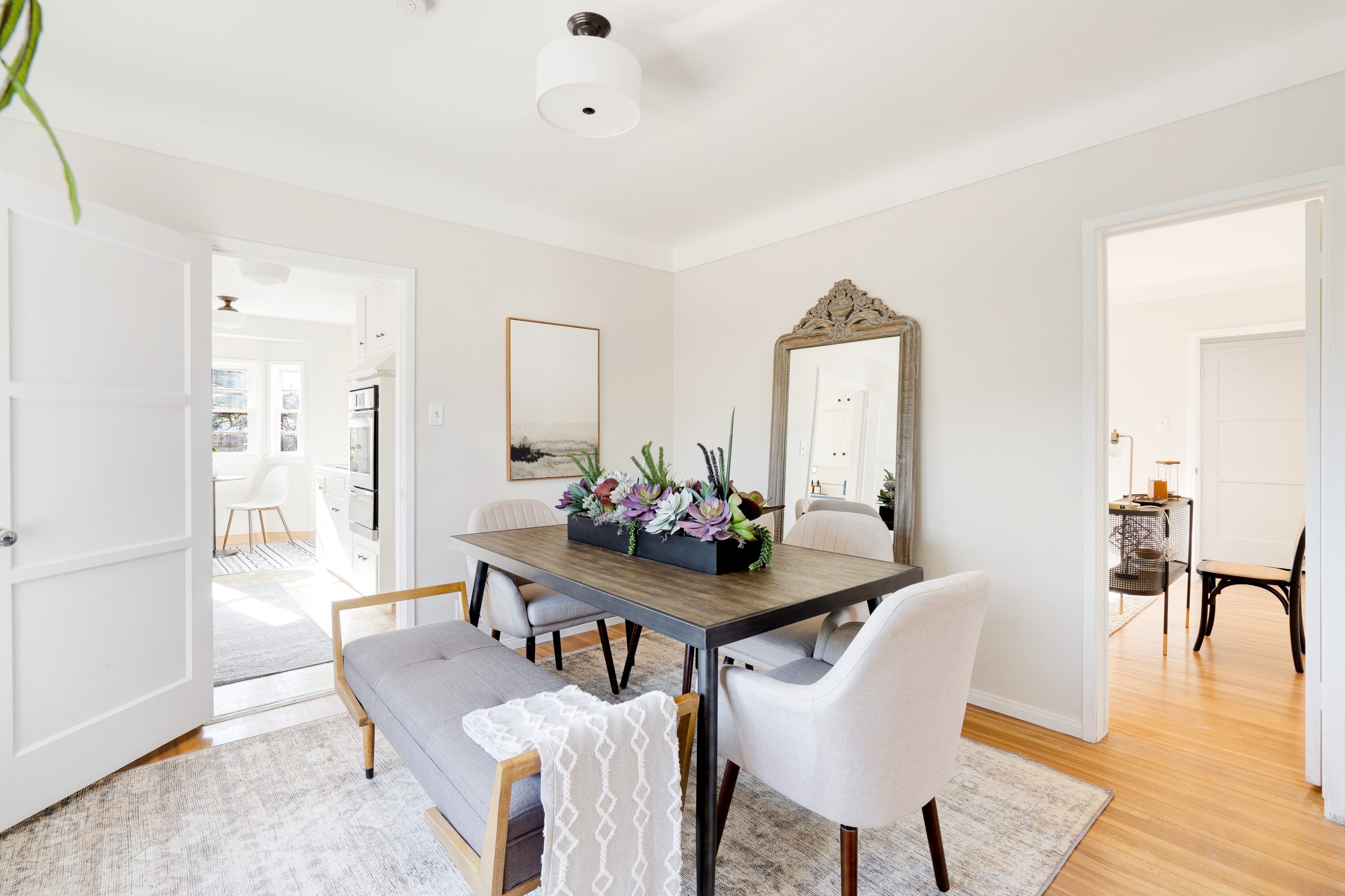 Strategic mirror placement bridges the gaps in an open floor plan, guiding the eye naturally from one space to the next. It also frames the home’s best features, drawing attention where it matters most. The right placement makes buyers see the home as larger, more luxurious, and completely move-in ready.